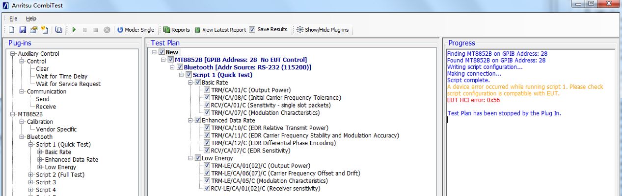 1,使用原始host_test 工程程序烧录CC2640R2F,然后使用MT8852B测试,PC窗口出现EUT HCI error: 0x56 报错码,如下
