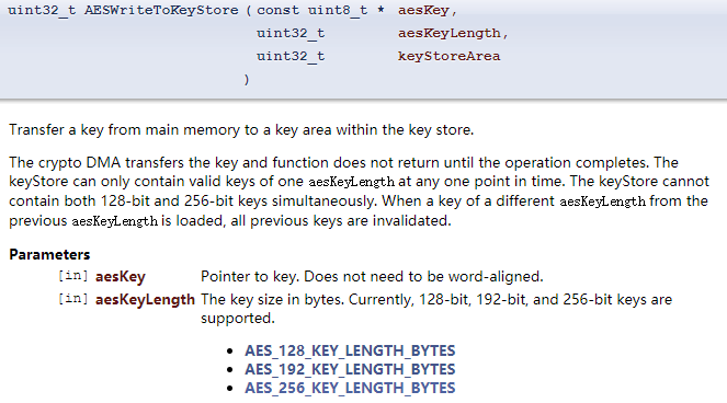 我使用的文件为SDK中提供的CryptoCC26xx.h以及CryptoCC26xx.c,加密方式为AES-CBC,经过测试,密钥长度不能大于16字节,若大于16字节,也只会取前16字节作为密钥,请问CC1310的AES CBC加密密钥长度最多只能为16字节吗?能否修改为32字节吗?