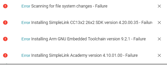 我在使用CC2652R下开发板时,资源管理器导入CCS中,需要下载SimpleLink到本地,但是我下载一直出错,错误原因是read ECONNRESET,请问是那里出了问题了吗?