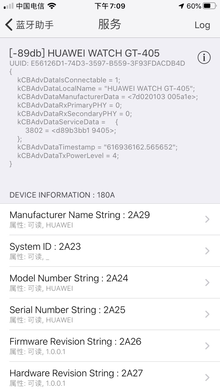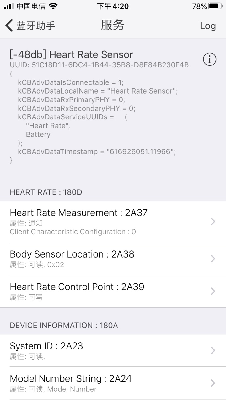 第一个图是我现在的例子里面的,第二个图是华为手环的,请问怎样添加Manufacturedata 到我的heartrate例程中,谢谢