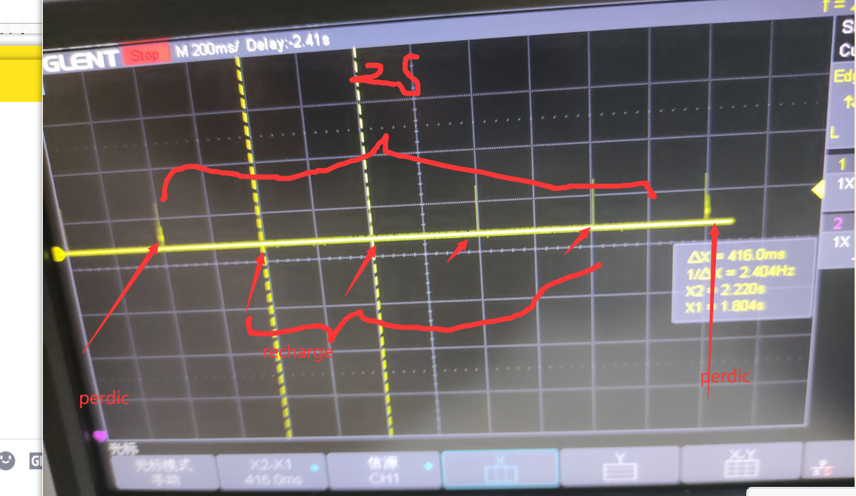 想请教一下,为啥我CC2640R2F 频繁recharge 大概416ms就会出现一个recharge 峰,测量宽度大约200us和手册说的差不多,但是我看别人频率是几分钟一个,而我为啥这么频繁;是否正常谢谢啦。