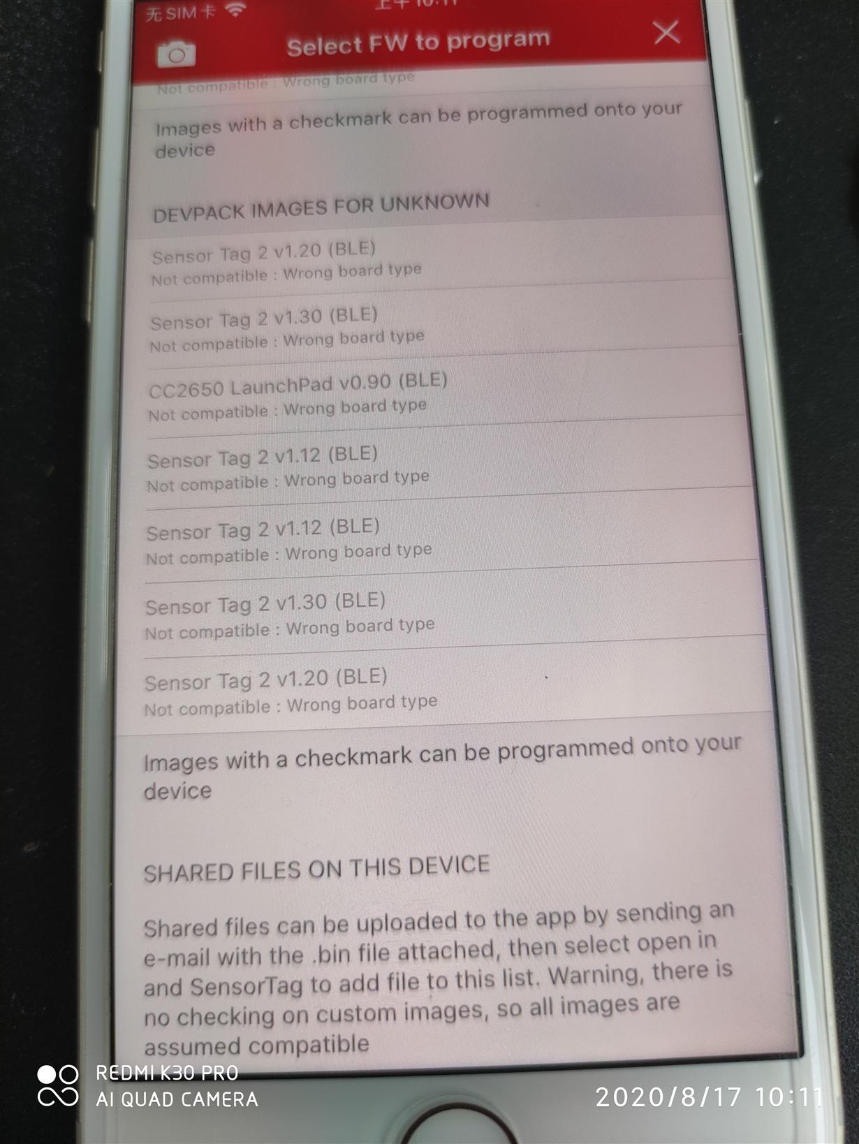 你好,我使用SimpleLink Starter app给off-chip 例程OAD升级时,为什么升级界面时灰色的,不能选择BIN文件;