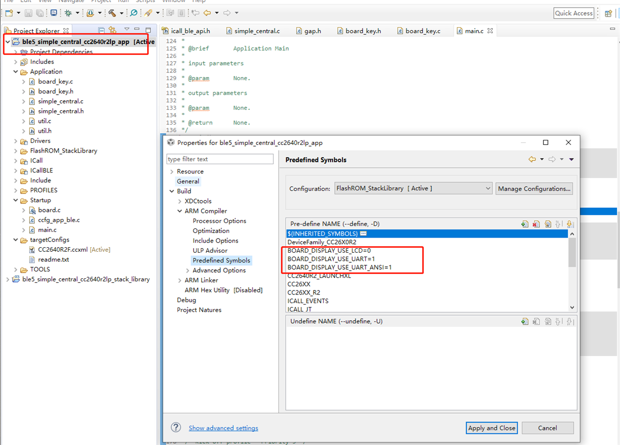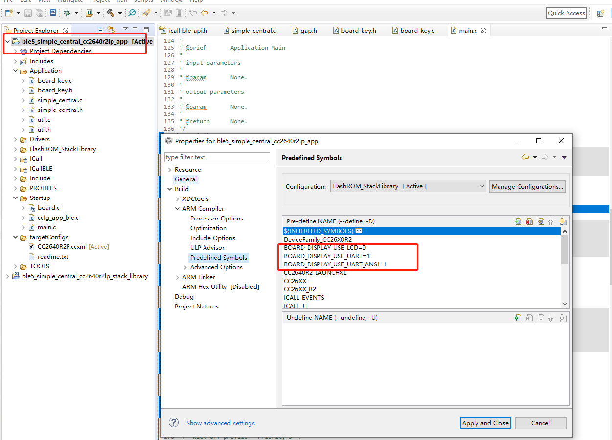 调试CC2640R2R demo,现在遇到已经编译ble5_simple_central_cc2640r2lp_app的工程和烧录了程序,宏定义也按照如下做了修改,但烧录进去后UART的打印没见反应和用BLE Tools的软件工具也搜不到CC2640R2F。