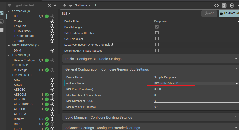 1. 修改后的CC2640R2F-LAUNCHPAD上在CCS10.1 Debug simplelink_cc13x2_26x2_sdk_4_20_01_04 SDK中的BLE5stack的范例,程序能正常运行,但是我在安卓手机nRF Connect软件会发现蓝牙的地址是变化,每Debug一次就变化一次蓝牙的地址,请问是什么原因造成的?