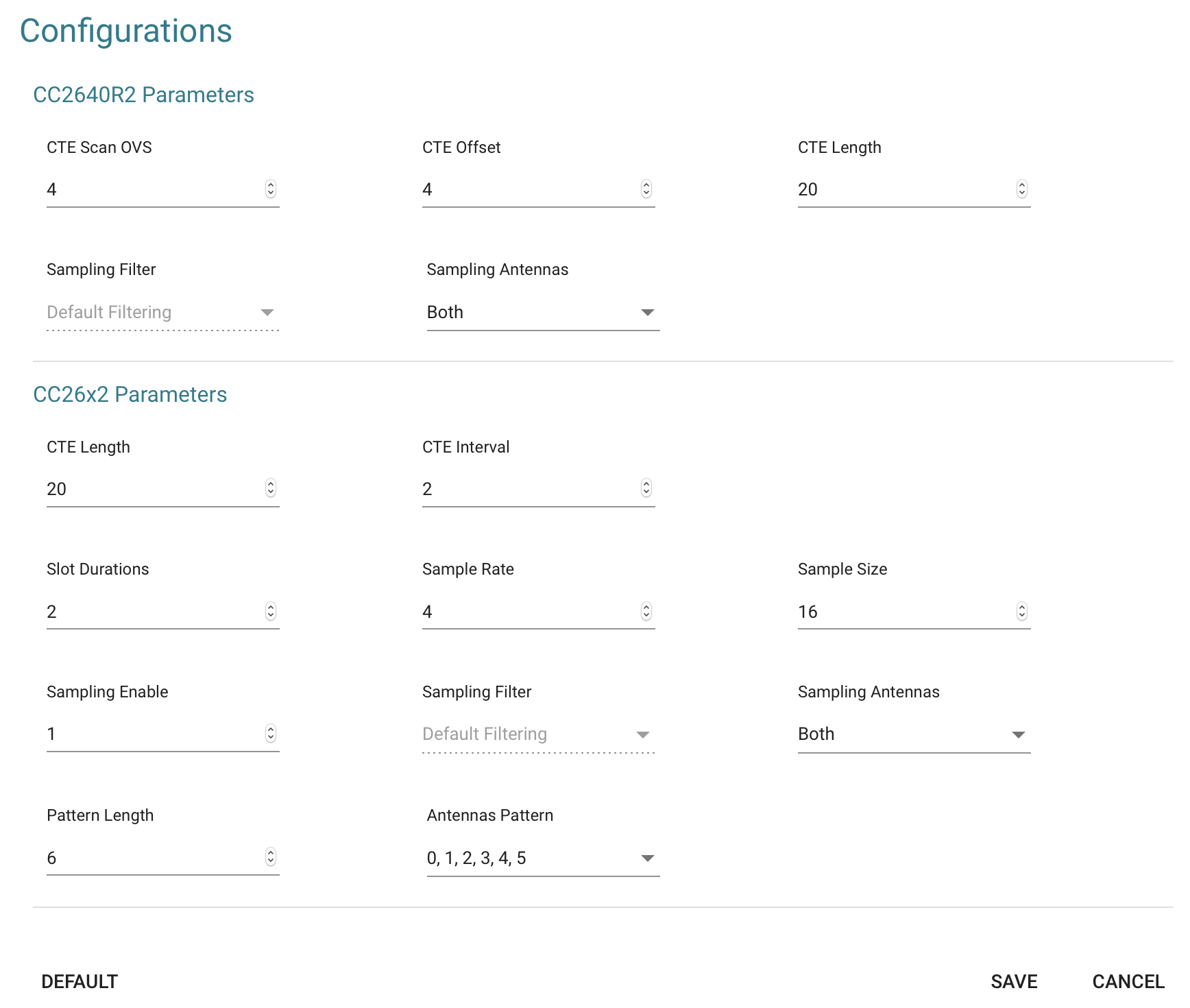 我目前正在使用2个BOOSTXL-AoA(passive)+1个slave+1个master进行三角定位,开发板型号为CC26x2R1,使用的sdk版本为最新的4.30.00.54,UI版本为RTLS UI 1.1.0,我发现当两个passive都连接上时,UI可以显示两个BOOSTXL-AoA的测量角度,但都是默认同时使用相同的天线阵列(阵列1或阵列2),现因定位需求,需要一个BOOSTXL-AoA使用天线阵列1进行测量,另一个BOOSTXL-AoA使用天线阵列2进行测量,当在configuration中设置同时使用两个天线阵列时,UI运行出现错误,请问是否能够实现同时使用两个天线阵列?或者对每个BOOSTXL-AoA参数进行单独设置,即一个使用阵列1,另一个使用阵列2?谢谢!