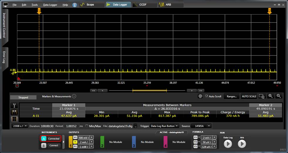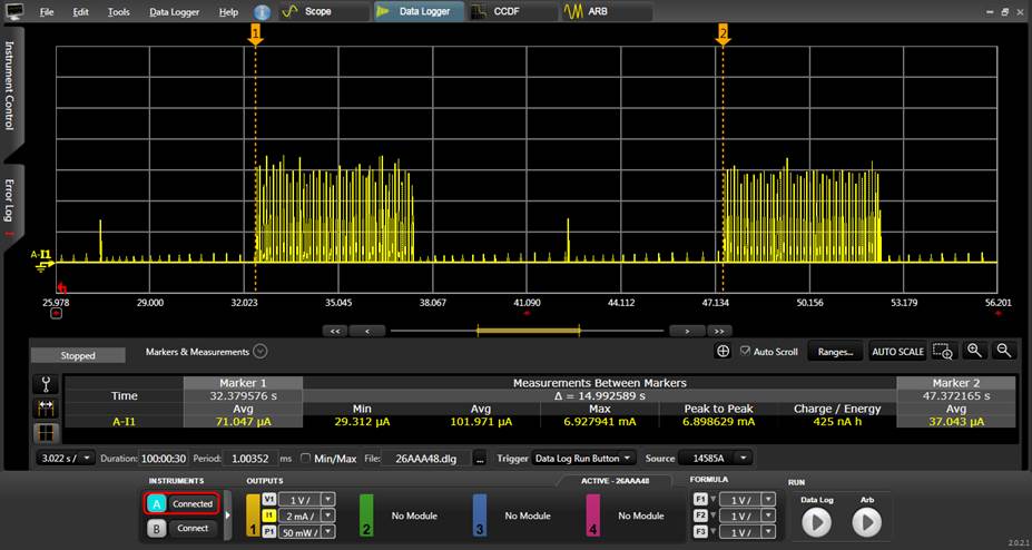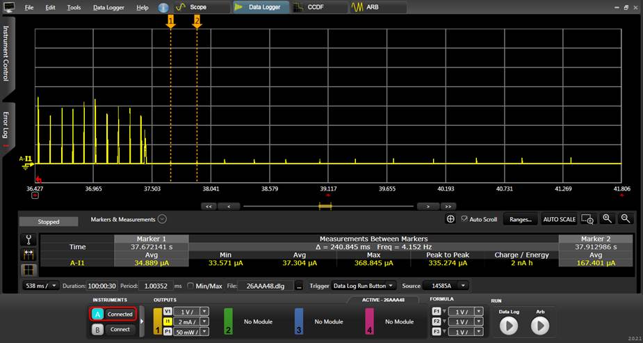 用電流儀器抓出來的電流圖發現, Advertising  disable 時, 會有不間斷的pulse出現, 如下: