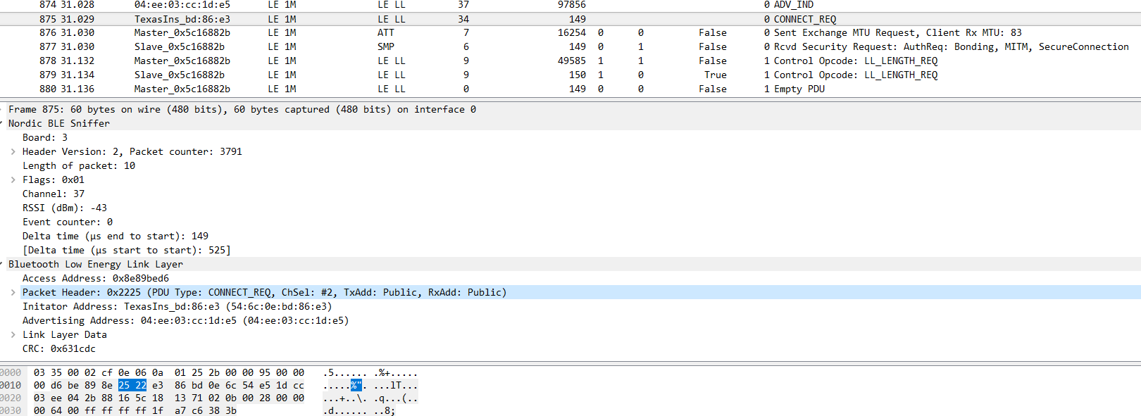 经过封装的;而用wireshark 抓包,能够抓到Connect_req帧的Packet Header,Link Layer Data数值;