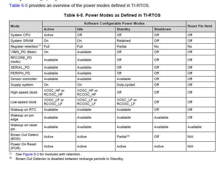/** @brief Configure wakeup (from shutdown) on pins * * @param aPinCfg #PIN_Config list identifying pin ID and relevant pin * configuration as one of: * - #PINCC26XX_NO_WAKEUP (default) * - #PINCC26XX_WAKEUP_POSEDGE * - #PINCC26XX_WAKEUP_NEGEDGE * @return #PIN_SUCCESS if successful, else error code * * @par Usage * @code * PIN_setWakeup(NULL, PIN_ID(9)|PIN_WAKEUP_NEGEDGE); * Power_shutdown(0, 0); * @endcode * * @note A wake-up event to wake up from shutdown is not detected until * the device reaches shutdown. Wake-up events happening after a shutdown * is initiated but before actual shutdown are not captured and thus will * not cause the device to wake up. */ extern PIN_Status PINCC26XX_setWakeup(const PIN_Config aPinCfg[]);