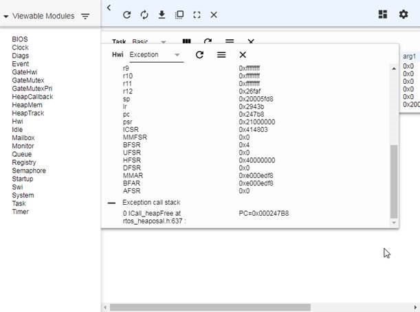 用周期性调用HCI_ReadRssiCmd的方式读取手机信号RSSI,每50ms发送一次读取命令,但是过一会,程序就卡在ICALL任务里面,导致其它任务卡死不跑,在ICALL任务里面卡顿100多s后,自动恢复;咨询了TI,说是要用注册回调的方式读取RSSI,倒是不卡顿了,但是程序跑着跑着就挂了,每次挂的地方都是在图片所示的地方:rtos_heapsal.h(637行),ICALL_heapFree PC=0x000247B8