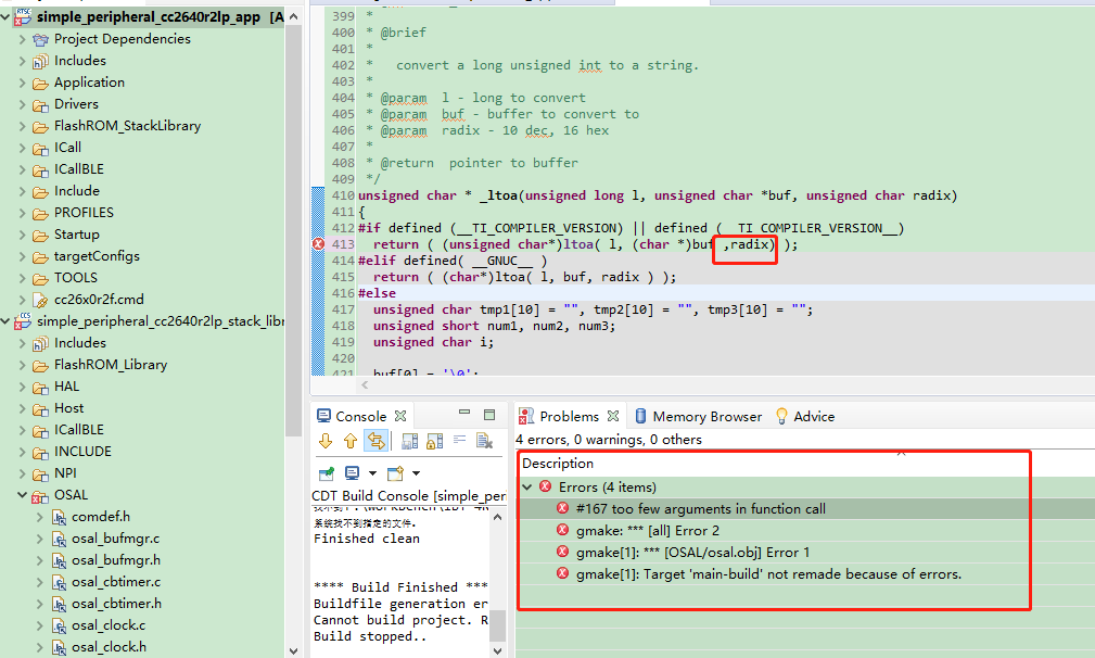 gmake: *** [all] Error 2 simple_peripheral_cc2640r2lp_app C/C++ Problem