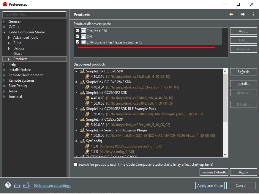 之前 打开旧版本的ccs 时,在打开后会 识别同目录下的SDK或是tool,但ccs10的不识别呢