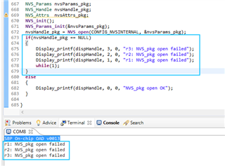 Display_printf(dispHandle, 0, 0, "NVS_pkg open OK");