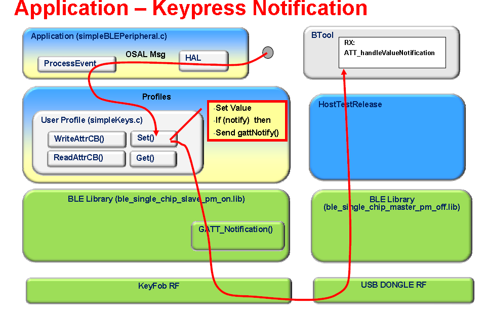 说简单点,先discovery(GAPCentralRole_StartDiscovery),回调中处理simpleBLECentralStartDiscovery(),通过UUID找到对应的handle,handle就是