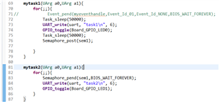 ,而且实验板子(使用TI的开发板)上的两个LED可以闪烁。然后我做了如下修改,仅仅修改了task1