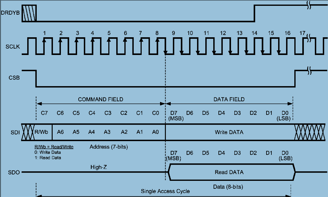 SPI读写程序,可以写入,示波器也能看见SCLK的的波形,但是总是不能返回数据,我用中断模式去读取数据,DRDYB也不会被拉低,就是说没有返回数据,请高手看下,哪里有错误,或者可能是哪里的错误?