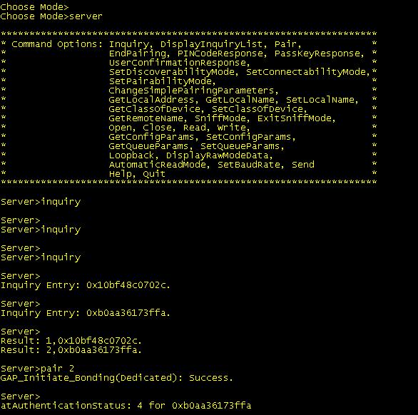 下一步怎么操作?输入pair 2,蓝牙设备没有反应。如何配对,4是什么意思?