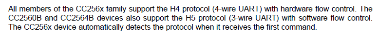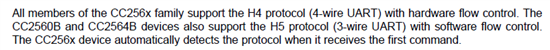 2. 这是CC256x的SPEC,我们看到CC2564B可以采用H5 Protocol ,也即三线UART,所以是可以去掉RTS和CTS的。请问该怎么去掉啊?