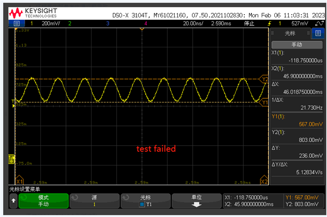 CC2642手册中提到一个使用片上时钟ADC采样主时钟振幅的应用,标准输出为465mV±50mV,但是我们实际的应用中出现批量生产少量产品(总量500PCS,设计及元器件均一致情况下,振幅不良占比10%)读值仅为270mV情况,我司设计与开发板的主要区别是CC2642R1FRGZ的电源为1.8V(内部DC-DC模式),使用示波器测量测试通过和测试失败的产品主时钟波形及振幅基本一致,想咨询下什么原因会导致设计及物料均一样的情况下出现输出晶振振幅不一致现象,另外片上时钟ADC的参考电压是否跟随CC2642R1FRGZ的输入电压?