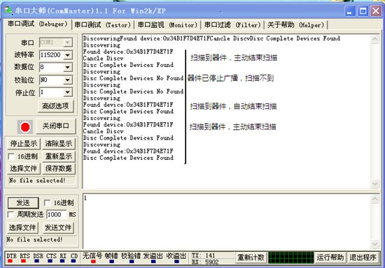 第一,串口有时候丢包,所以有出现discovery之后并没有打印任何信息。