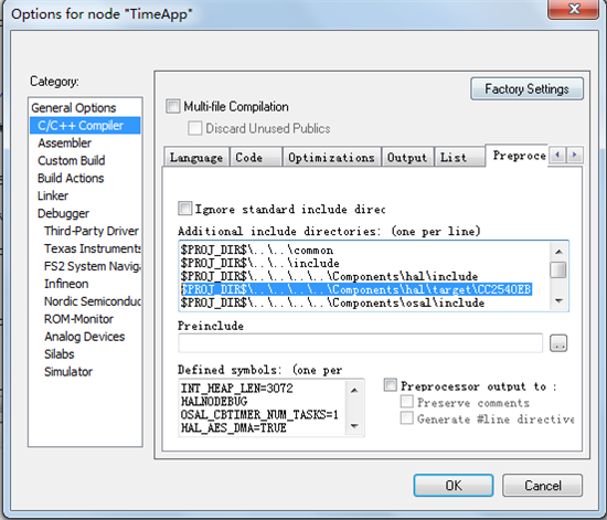 3、设置IAR工程中的C/C++ Compiler, 修改下图高亮部分为我们自己的BSP: