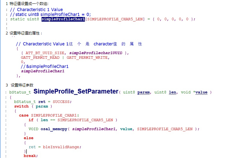 1.你要把 static uint8 simpleProfileChar4 = 0;改成一个数组,如
