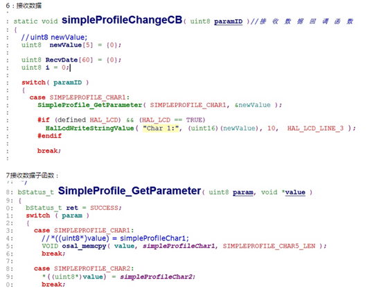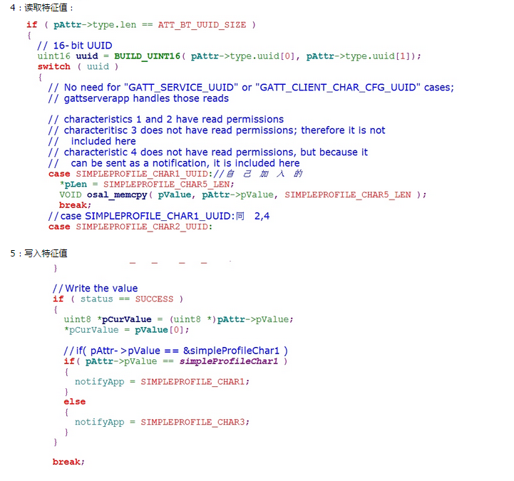 4.修改特征值写回调函数simpleProfile_WriteAttrCB及读回调函数simpleProfile_ReadAttrCB。这个可以参照Char1