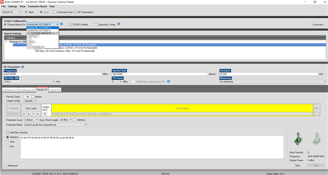 我使用的cc2652p,smartrf studio 2.28.0 ,选择proprietary mode,