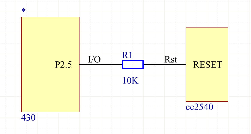 大家好,我想用430控制CC2540的RESET管脚实现自动复位,就是在430的一个通用I/O口引出一根线串联一个电阻,另外一端接CC2540的RESET管脚,通过编程使430输出高低电平,从而模拟手动复位过程,请问这种设计合理吗?会不会有什么问题?电路连接图在附件里