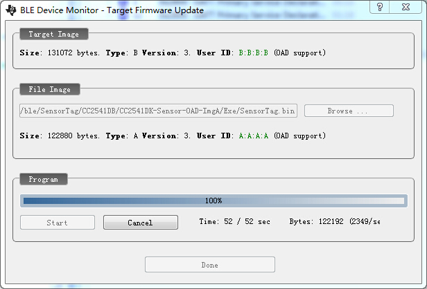 我用 BLE Device Monitor 更新代码,用IMAG A 下IMAG B没问题,但是用IMAG B下IMAG A,出现问题,如附件,请问这是什么问题?