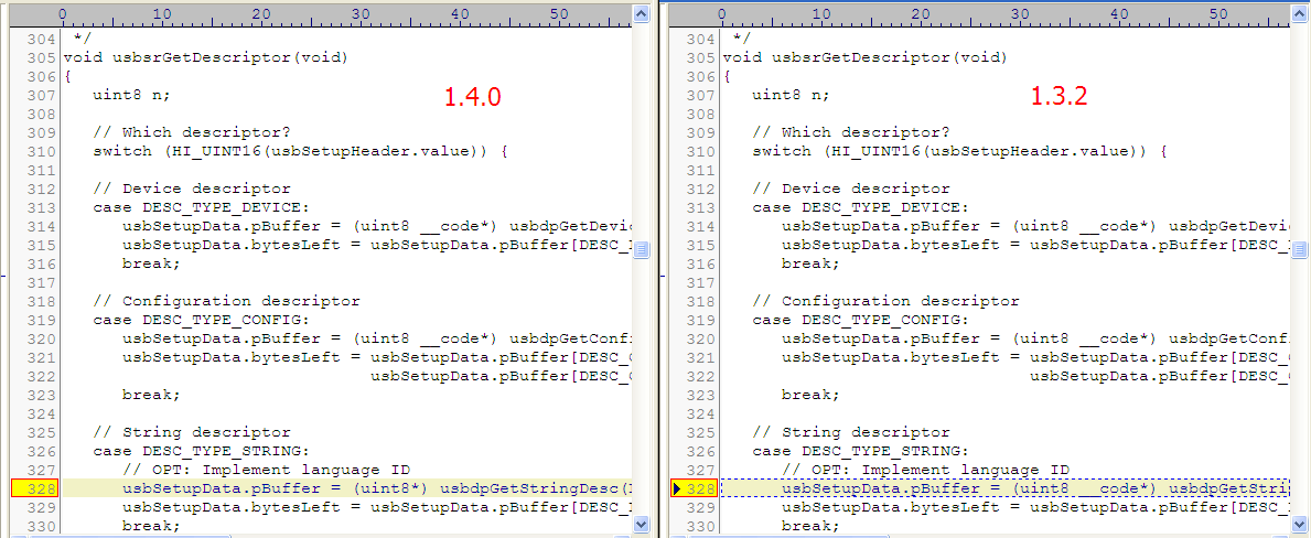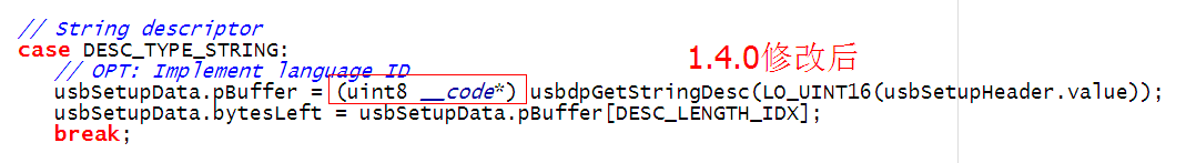 在使用1.4.0协议栈HIDAdvRemoteDongle工程,这个工程定义了三个HID设备键盘、消费类电子、鼠标。将工程编译下载到Dongle中,win xp 系统不能识别键盘(见图3)。使用win 8就可以识别。使用1.3.2的协议栈HIDAdvRemoteDongle工程则win xp 也能识别出键盘。分析1.4.0与13.2的协议栈,发现usb_standard_request.c文件两个版本的协议栈在usbsrGetDescriptor()函数中有一处不相同(如图1)。1.3.2的多了__code,将1.4版本这个文件加上这个就能识别出键盘(如图5)。有朋友也遇到过这个问题?能解释下这个现象吗?