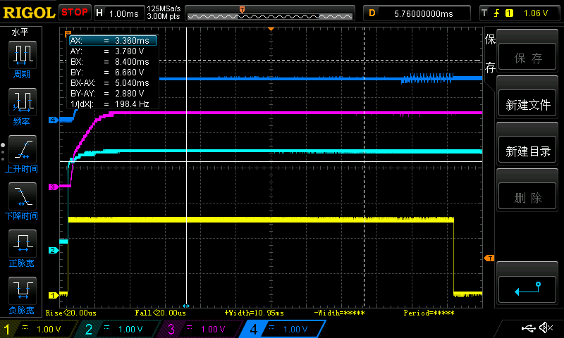 附件图片中,4为ADC2端口电压值,3为参考电压2.048V,2为参考电压的输入电压3V, 1为电压控制脚。