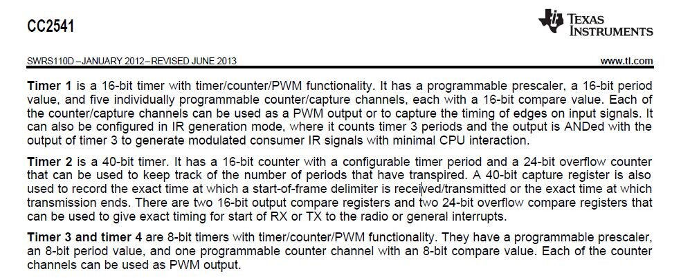 现在有款产品,要用蓝牙BLE去控制LED灯。我看CC2541的手册,timer1,timer3、4可以配置PWM。但有个疑问如果把这几个计时器配置成PWM,会不会影响蓝牙协议栈。