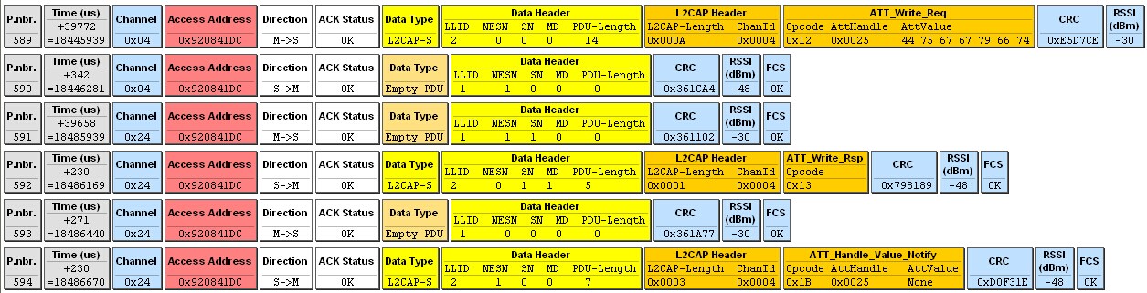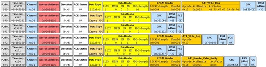 用android端和CC2541通信,android通过改写CC2541的特征值发送数据,抓到两种如下不同的包,android端的代码是一样的,不知道为什么会产生这种现象?