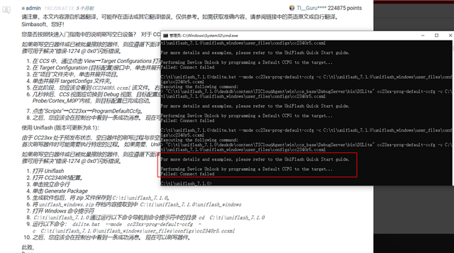 进一步的建议是使用 uniflash 8.4 并看看这是否有效。