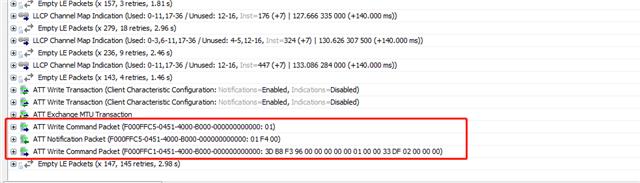 看空口数据,第二次连接升级时,APP发送 (F000FFC1-0451-4000-B000-000000000000: 3D B8 F3 96 00 00 00 00 00 01 00 00 33 DF 02 00 00 00)数据之后就没有下一步了。
