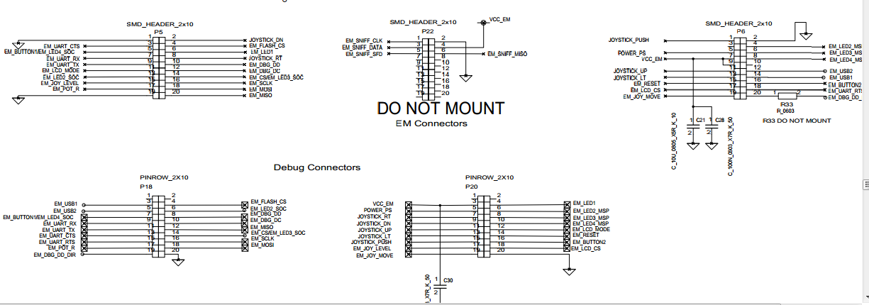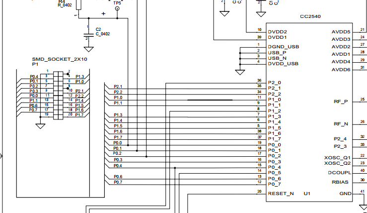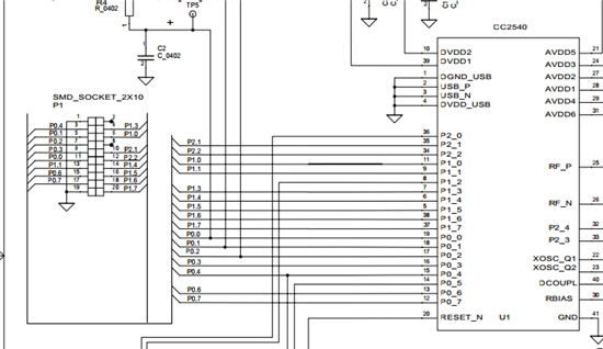 我在Ti官网下载了CC2540EM和SmartRF05原理图,但我看结合这两个原理图看时发现