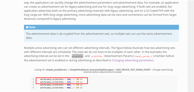 advParams1.primIntMin = 160; // 100 ms advParams1.primIntMax = 160; // 100 ms