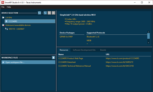 CC2340RX不支持SmartRF Studio,您可以尝试使用Uniflash去烧录设备。您可以在Quick Guide里查找如何安装Uniflash。