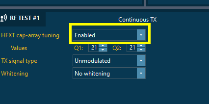 此界面直接开始start test  有100K左右的频偏,想要通过内部校准值进行调整。让单载波在10K左右