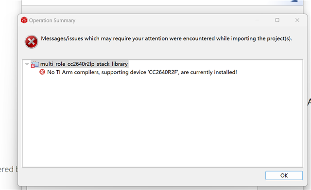 导入cc2652的例程是没有问题的,但是导入cc2640的例程时出现如图的报错
