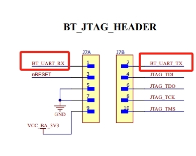 2,通过连接AOP的帧来接收蓝牙的输出数据,用TTL转USB的串口器连接下图的RX,TX,接收到的数据是连续的,即可以接收到每一帧的数据