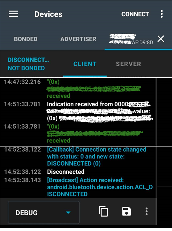 CC2340R5 扮演 Peripheral , 手機 APP 執行 nRF Connect。 已建立連線. 但沒多久. APP就顯示已斷線.