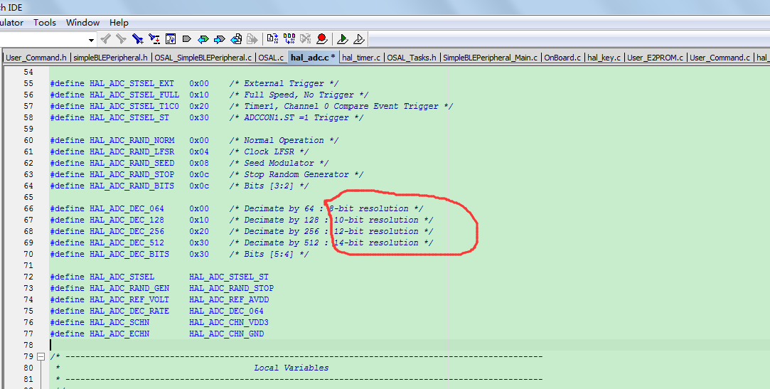 CC2541中ADC转换的问题,datasheet和例程SimpleBLEPeripheral不一样!