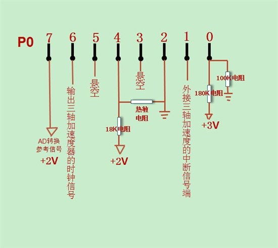 我的2541 P0_1口是接的三轴加速度器中断信号。下图是P0口电路图: