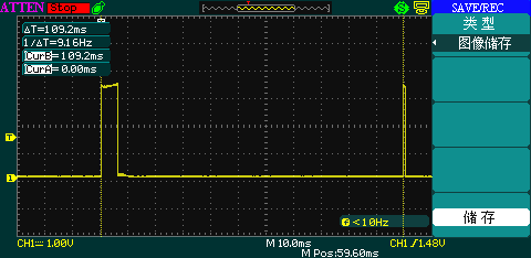 开机LED灯的两次闪烁时间间隔为109.2ms