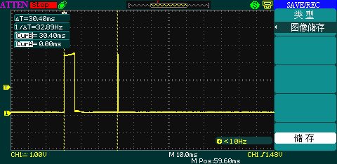 这时出现了问题,按键触发重新执行KFD_BATTERY_CHECK_EVT事件 ,LED闪烁的频率与刚开机的闪烁频率不一样,用示波器抓取LED端的电平变化,发现刚开机的时候两次LED亮的时间间隔为109.2ms(有小小波动),而按键中断唤醒后的间隔为30.4ms(有小小波动),所以导致LED的闪烁不一样。