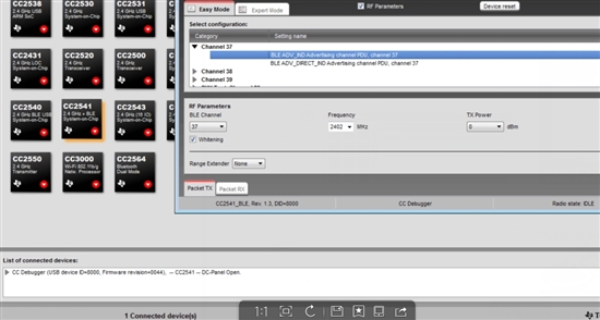 在用CC debugger + SmartRF studio 7控制CC2541做射频发射时,