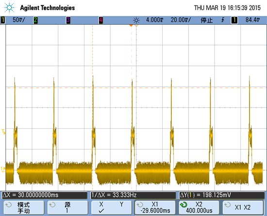 1.同样是下载TI官方的SimplePeriheral的蓝牙做从机,设置相同的connection interal参数(4S),当用IOS系统和Android系统连接蓝牙做主机(苹果手机用lightblue软件,安卓用官方的BLE软件),用示波器测出来的connection interal是不一样的,苹果的连接间隔变成30ms,安卓的还是4S,为什么呢?测试图如下