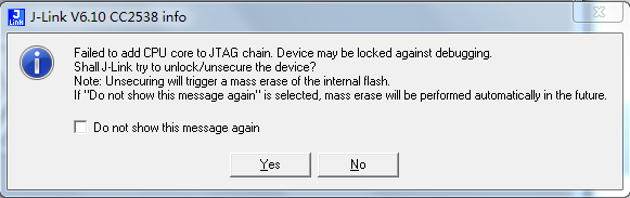 cc2640支持Jlink下载,我已经试过。你这个问题我也出现过,是Jlink没有识别到芯片,证明方法是你可以把芯片和jlink断开直接下载,依然会出现这个错误提示。