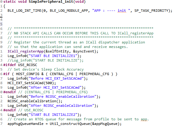 工程师您好,我们在sdk例程的基础上设计了一份蓝牙代码,这份代码在cc2652rb的开发板上能正常跑,但是在我们自己设计的板子上时蓝牙没法正常工作,我们在蓝牙初始化的代码部分查到了原因,我们在其中使用串口输出添加了调试代码,结果在